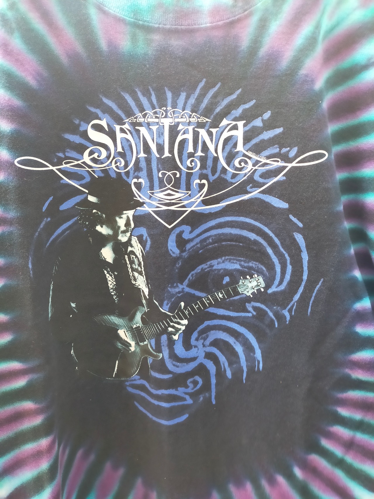 哀愁漂うサンタナのプレイ姿とブルーのタイダイがマッチした